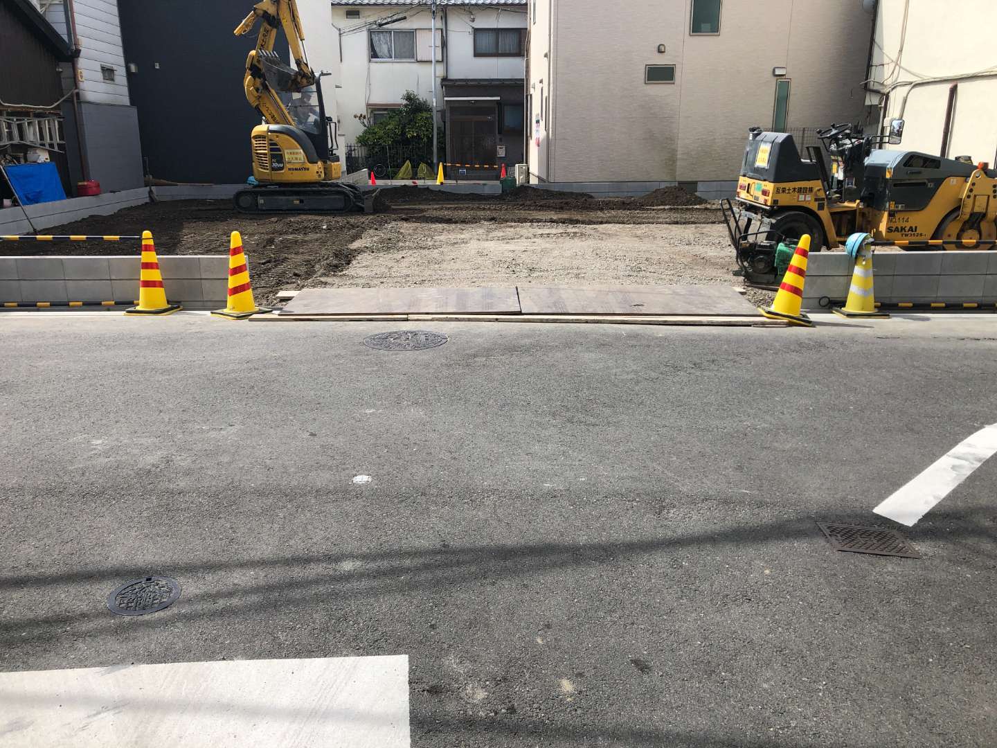 弊社は掘削工並びに路盤工と行い、本日の舗装工までを請け負いました。